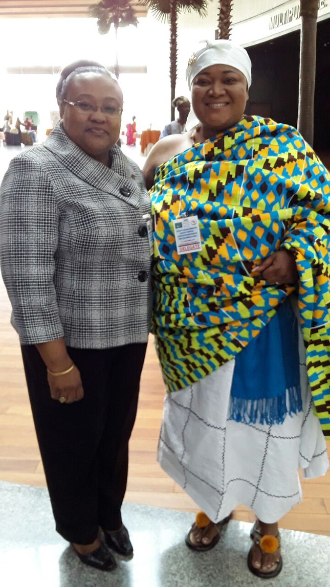 | Katibu wa Halmashauri Kuu ya Taifa, Siasa na Uhusiano wa Kimataifa SUKI, Dkt Pindi Chana akiwa na Ndg Nana Agyakoma,(Mother of Mampong) Kiongozi wa Kimila kutoka nchini Ghana ambae amehudhuria mkutano wa Umoja wa Afrika kuhusu haki za wananchi. |